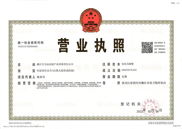 嫩江縣市萬達農副產品有限責任公司座落在嫩江縣前衛糧庫院內,是集辦公,收購及銷售一站式綜合性企業。公司現有固定員工13人,臨時員工20人。我公司先后與北京三河匯福糧油,云南云天化,益海嘉里集團。